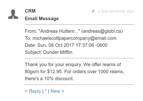 Similarly, any response that the customer sends to you gets automatically added to the Podio lead.